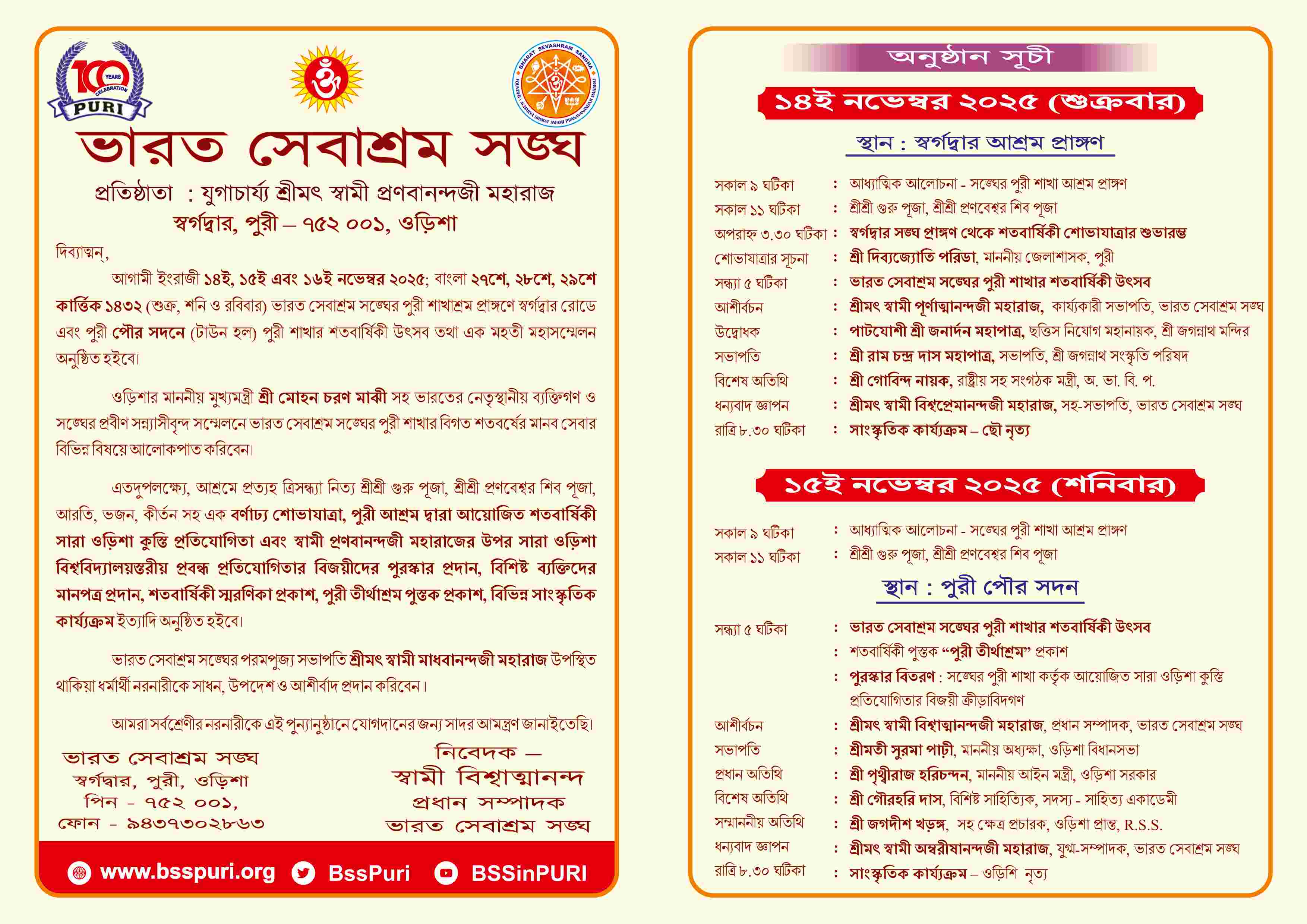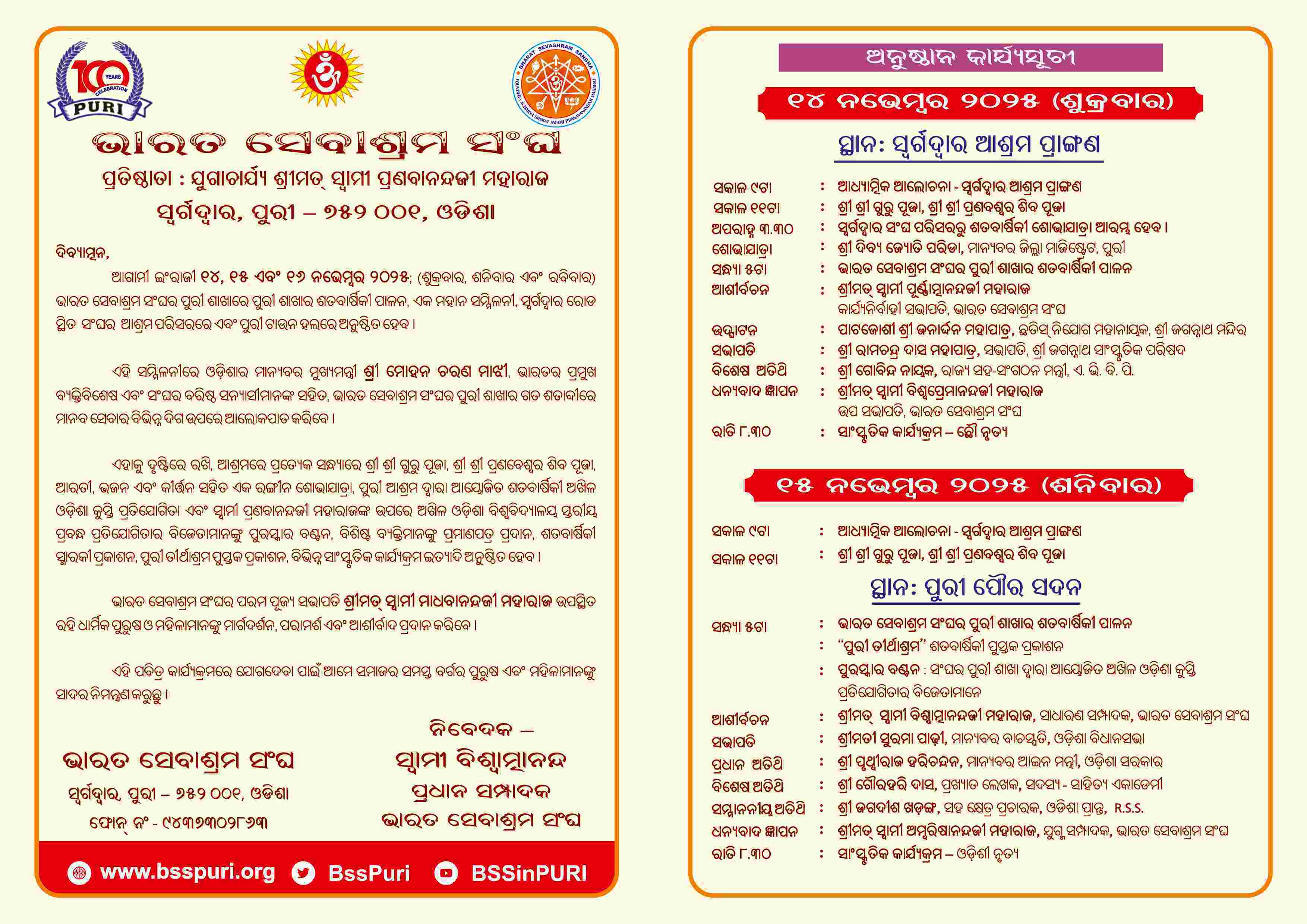 Bharat Sevashram Sangha 100 Years Celebration (1917 - 2016)